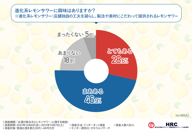 また、最近のレモンサワーは種類が豊富であり、およそ4人中3人は進化系レモンサワーに興味があることがわかりました。