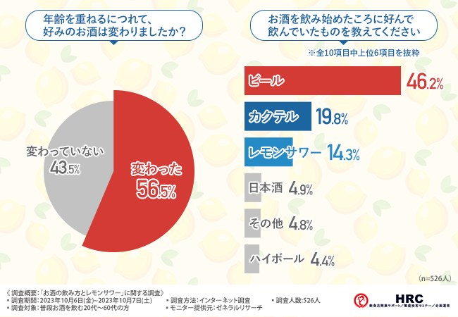 合同会社HRC(所在地:栃木県芳賀郡、代表:黒崎 武蔵)は、20代~60代のお酒を飲む方を対象に「お酒の飲み方とレモンサワー」に関する調査を実施しました。