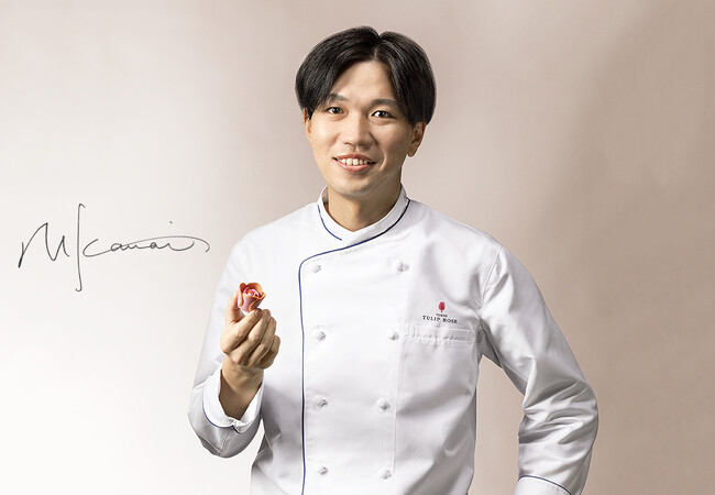 1986年生まれ。専修大学経営学部在学中に東京製菓学校にてお菓子作りを学ぶ。ハイアットリージェンシー東京にて皿盛りのデセールやプチガトーはもちろん、ショコラやウェディングの華やかな細工菓子まで、パティシエとしてあらゆる洋菓子の技術を磨いた。2013年に渡仏。パリにて、シェフ・パティシエをつとめる。2017年に帰国後、集大成として「TOKYOチューリップローズ」を手がける。