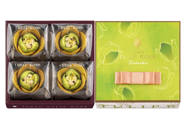ブランド誕生から累計2,500万個以上を販売し、“可愛すぎるスイーツの花園”としてファンを魅了し続けるシェフ金井理仁の「TOKYOチューリップローズ」。代表作『チューリップローズ』は、「もう可愛いのひとこと」「周りはサクサク中はフワフワ、見た目に負けないおしゃれな味」「笑顔にならずにいられない」と発売からファンを虜にしてきました。そんな『チューリップローズ』の中でも人気のフレーバー<ピスタチオ>が待望の復活!鮮やかなグリーンが目をひく、冬限定の味わいを思いきり楽しんで!