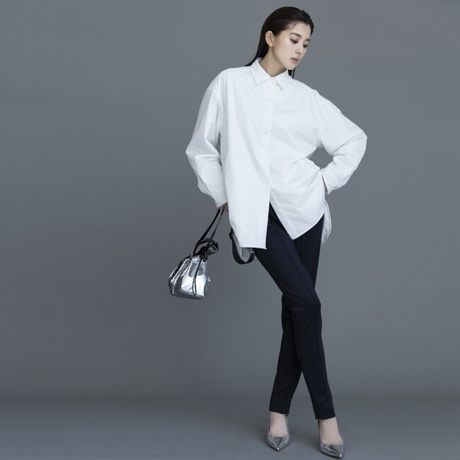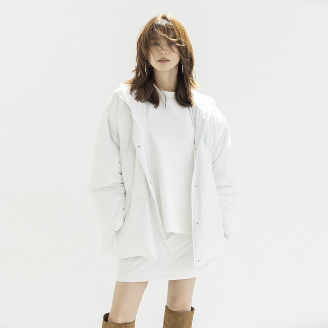 公式オンラインサイトでは、モデルの朝比奈 彩さんを起用したWEBコンテンツの公開と、シャツジャケットやアウターなどコラボカラーアイテムの先行予約を開始いたします。