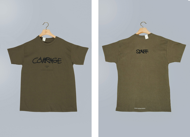 「Coverage Staff Tee」は2010-2011AWのランウェイコレクション発表の際にスタッフが着用していた非売品のStaff Teeを元に製作。当時のプリント手法を用いてグラフィックを忠実に再現しています。