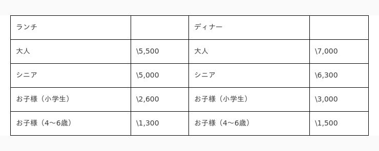 ※料金には全て消費税及びサービス料が含まれております。