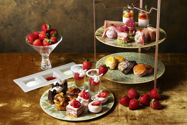 国産のいちごをふんだんに使い、可愛らしいピンク色が目を引くラインナップでご提供する「ストロベリーアフタヌーンティー」が優雅な佇まいで登場。
