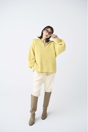 スキッパータイプの襟付きデザインが、こなれ感を引き出すニットプルオーバー。