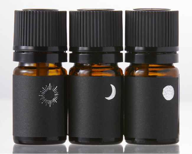 ”新月・三日月・満月“と約1か月の月の満ち欠けとマインドの変化を香りで表現しました。