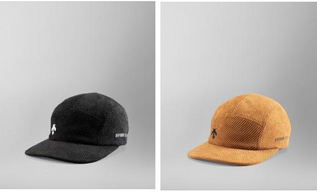 キャップは秋冬を感じさせてくれるコーデュロイ素材の浅型ジェットキャップ、前面右にはスピリットマーク、左サイドにメッセージ、後中心にはDSGマークの刺繍があしらわれ、普段の装いにもコーディネートしやすいお勧めの一品。