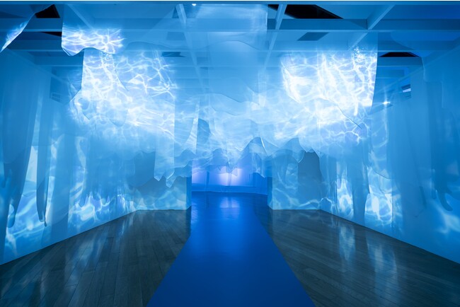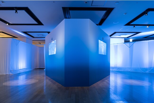 フレッドが用意したのは、来場者が足を踏み入れると、喜びと感動に満ちた広々としたエリアで爽やかな感覚、幸福と一体感の波のような抗いがたい振動が広がるブルーの空間です。