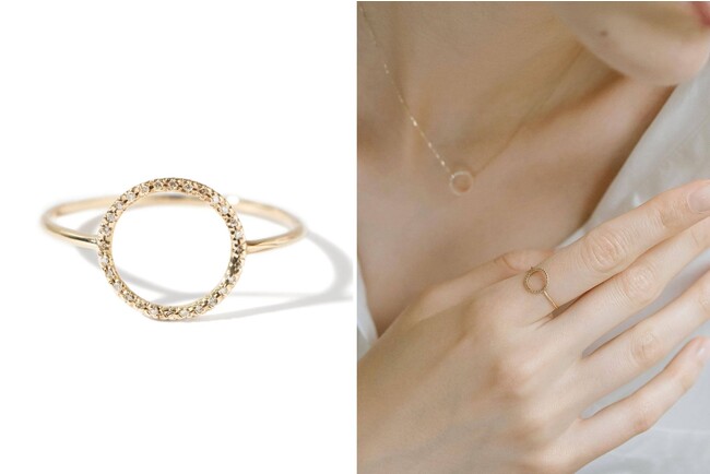 モードな印象のシンプルな円形モチーフ。どんなコーディネートでも合わせやすい、K10ゴールドリングです。指先の細見え効果も期待できる、繊細で華奢なデザインです。