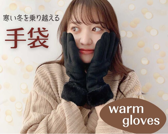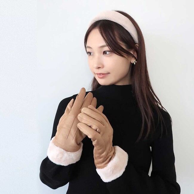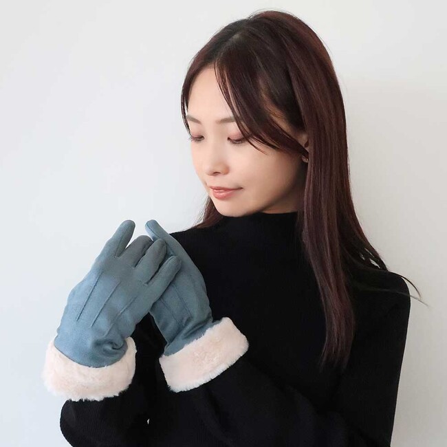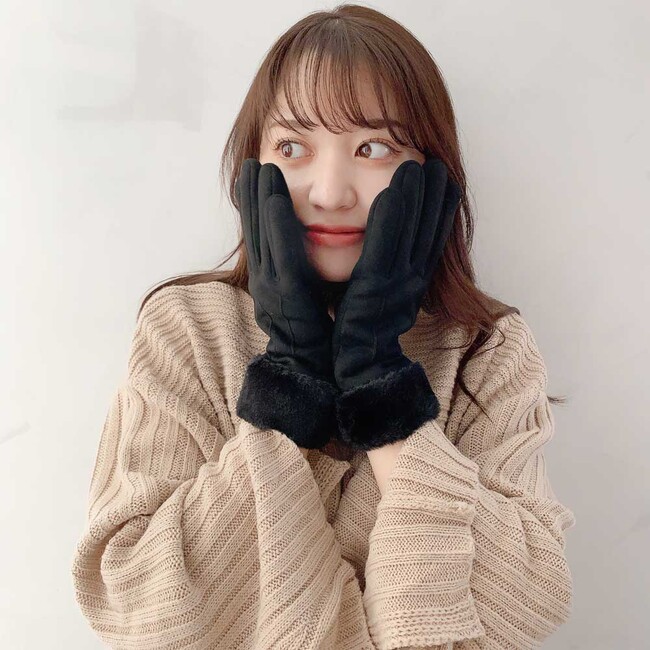手首にもこもこのファーが付いた可愛らしいデザインの手袋です。