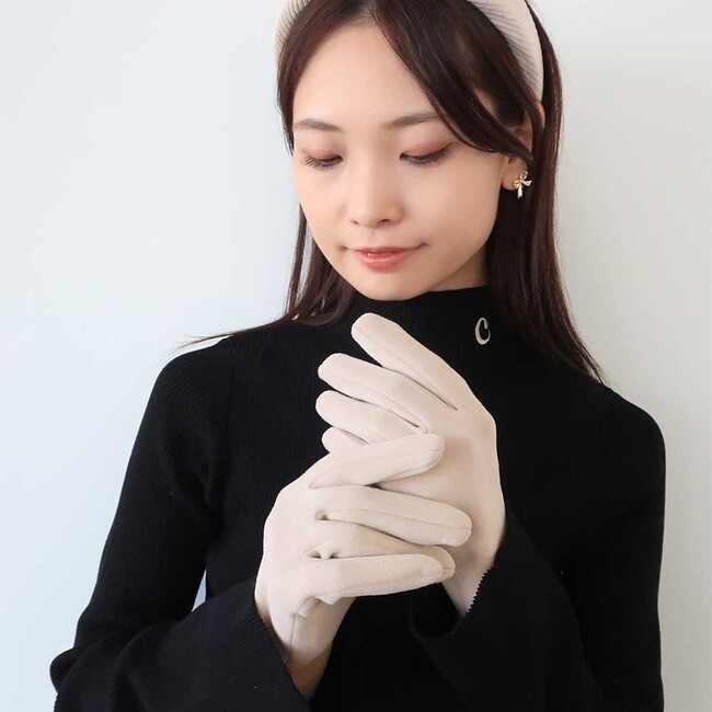 上品な細身シルエットで、手にフィットする優しい肌触りのフェイクスエード手袋です。