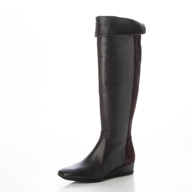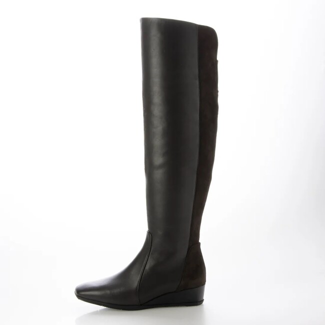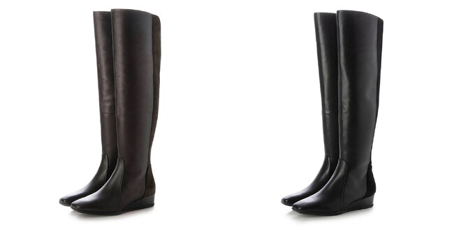 4. 足馴染みの良いやわらかい牛革とストレッチスエード素材を使用し、膝裏部分には足の動きに沿いやすいようスリットとストレッチ生地を取り入れることで、足に合わせてフィットしやすく、ずり落ちにくい仕様を実現しました。