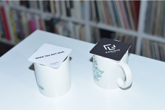 TEATAGは、独自に製品化したコースターとフタの役割を担うもの。表面には撥水加工を施しており、カップの上に置いてティーバッグを蒸らせば、茶葉本来のおいしさを引き出すことができます。