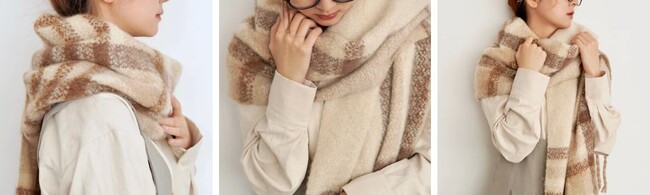 4.「チェックのぬくもり」大判ストール ¥3,200 (税込)
