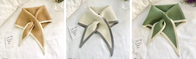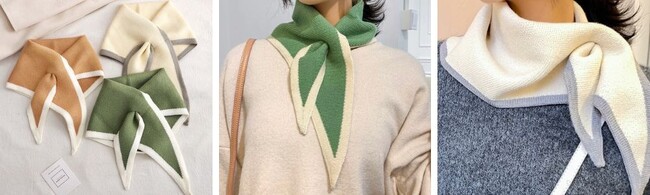 スカーフ風の三角デザインがオシャレ。マフラーとしても、付け襟のように首元のコーデの一部としてもお使いいただけます。他人とちょっと違ったアクセントに。