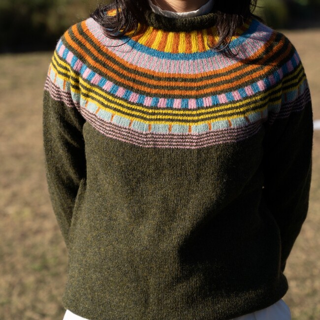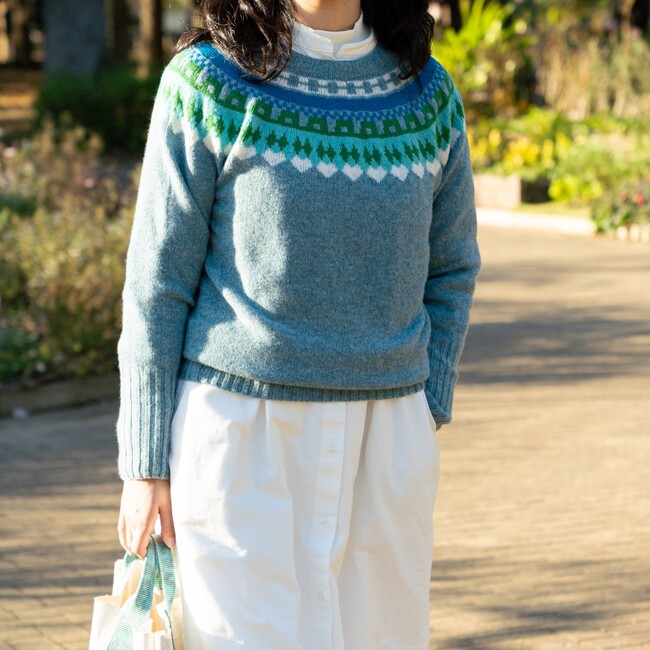 ドナの定番のセーターです。スコットランドの伝統柄をドナらしく現代風にアレンジした人気のシリーズ。