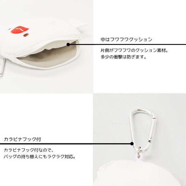 側面のチャックを開けると、中はふわふわなクッションになっています。飴20個分の容量で、鍵や口紅・イヤホンなどカバンの中を探しがちな小物入れにも◎