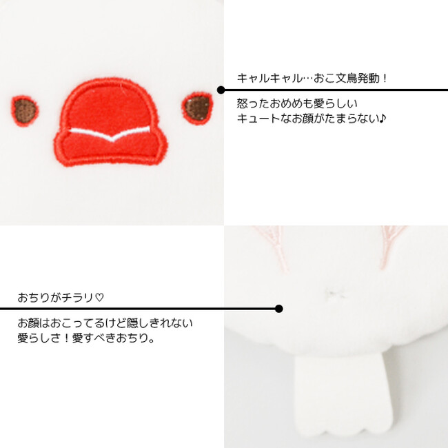 人気のおこ文鳥さんをイメージした表情に、ふっくらボディがキュートなデザインです♪