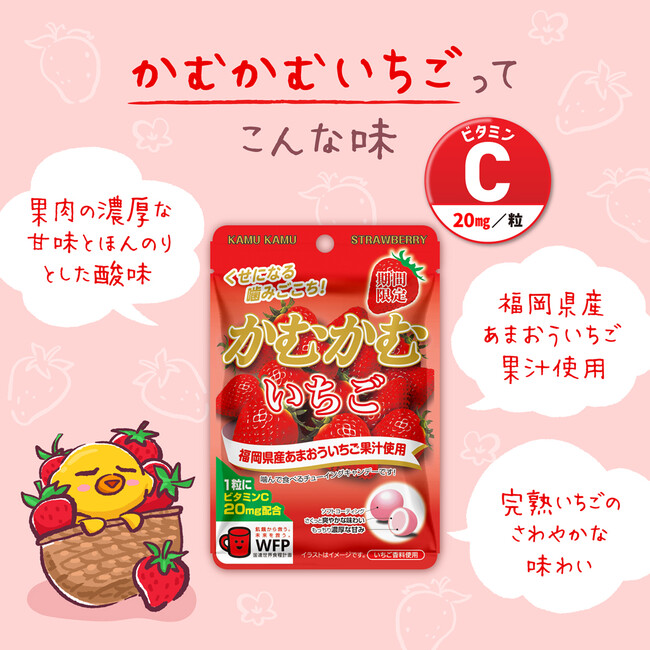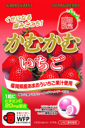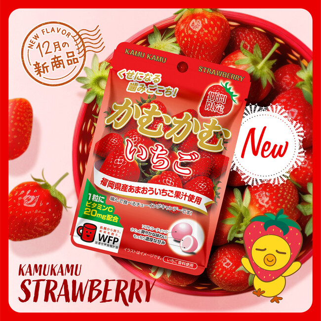 12月に発売する本商品は福岡県産あまおう果汁を使用したいちごフレーバーです。完熟いちごの爽やかな味わいは、昨年も大人気で今年も再発売いたします。