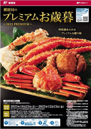 株式会社郵便局物販サービス(東京都江東区、代表取締役社長 荒若 仁)は、「郵便局のプレミアムお歳暮 ~2023 PREMIUM~」カタログを、2023年10月23日(月)から12月15日(金)(「郵便局のネットショップ」では12月18日(月))まで販売中です。