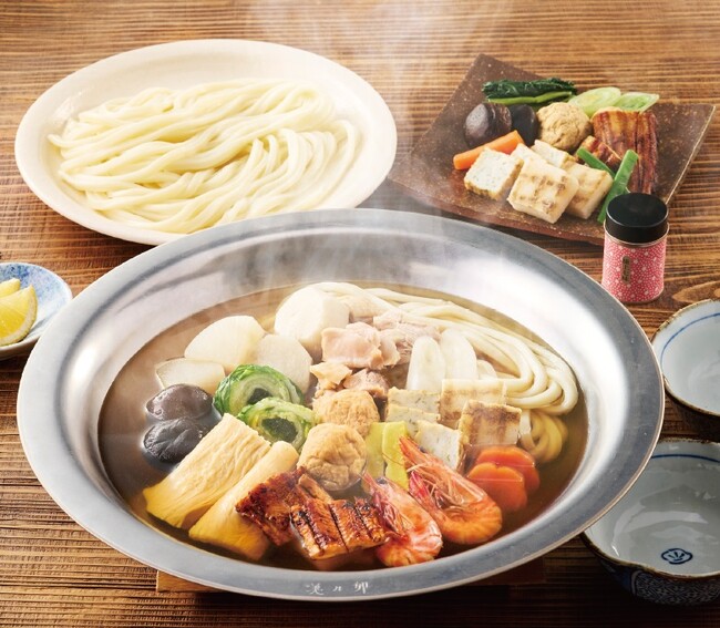 手間と時間をかけたこだわりの出汁でさまざまな山海の幸とうどんを煮込んだ鍋料理です。