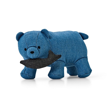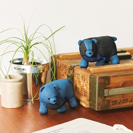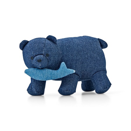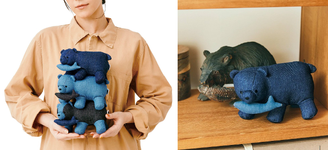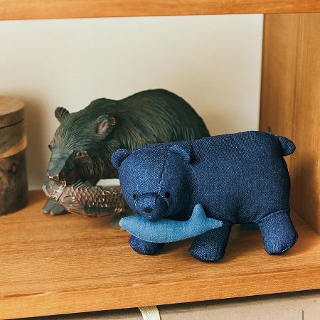北海道の名産品・木彫りの熊を、頭の角度や手足の絶妙な位置などにこだわり、デニム生地で再現しています。デニムならではのやわらかな印象が魅力です。