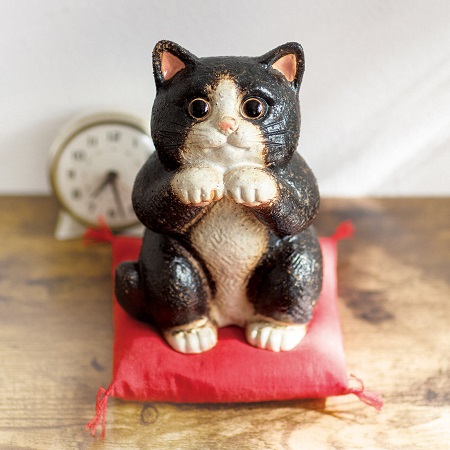 USEDo×猫部 しあわせを呼ぶ縁起もの 愛らしい表情の信楽焼まねき猫〈ハチワレ〉