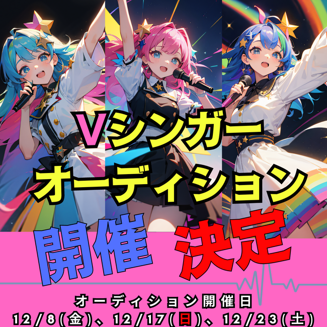 株式会社バーチャルランドは、本日2023年11月29日(水)より、バーチャルライバープロジェクト「スターライトプロダクション」のVシンガーオーディションをを開始いたします。