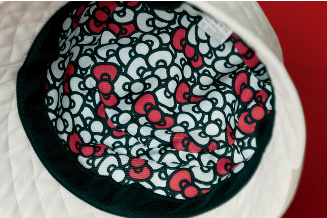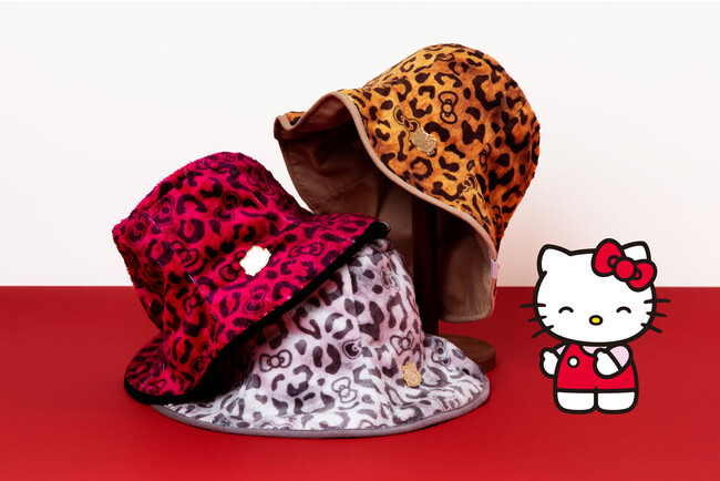 ハローキティのグッズの中で人気デザインの1つであるヒョウ柄を、オリジナルの総柄生地にアップデート。シーンや気分に合わせて使い分けられる、リバーシブルのチューリップハットに仕上げました。さりげなく散りばめられたハローキティのモチーフで、さらに気分をアップ!