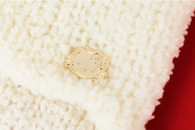 トレンドの猫耳ニットキャップを、ハローキティをモチーフにアレンジ。もこもこしたモール調の糸でボリューミーに仕上げた耳当て付きのデザインで、冬のコーディネートの主役にぴったり!