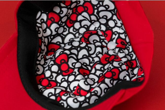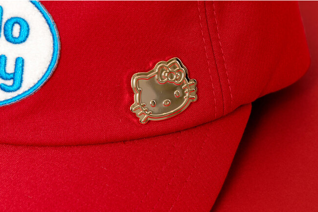 レトロかわいい「70年代シリーズ」をアレンジした、ポップなロゴワッペンのキャップ。オールシーズンかぶれるシンプルなデザインに、キュートなリボンの総柄裏地とゴールドのピンズを組み合わせて、ディテールまでしっかり「ハローキティ」なアイテムに!