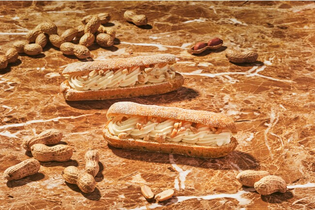 ピーナッツペーストを加えた、なめらかで軽いホイップクリームとカスタードクリームをあわせ、エクレア生地にサンドしました。
