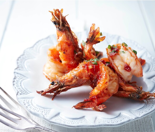 炒めた桜海老の香ばしさと、レモンピールやトマトの爽やかな酸味と甘みを合わせたソースがクセになる!皮ごと食べられる海老で、食卓に華やかさをプラス。