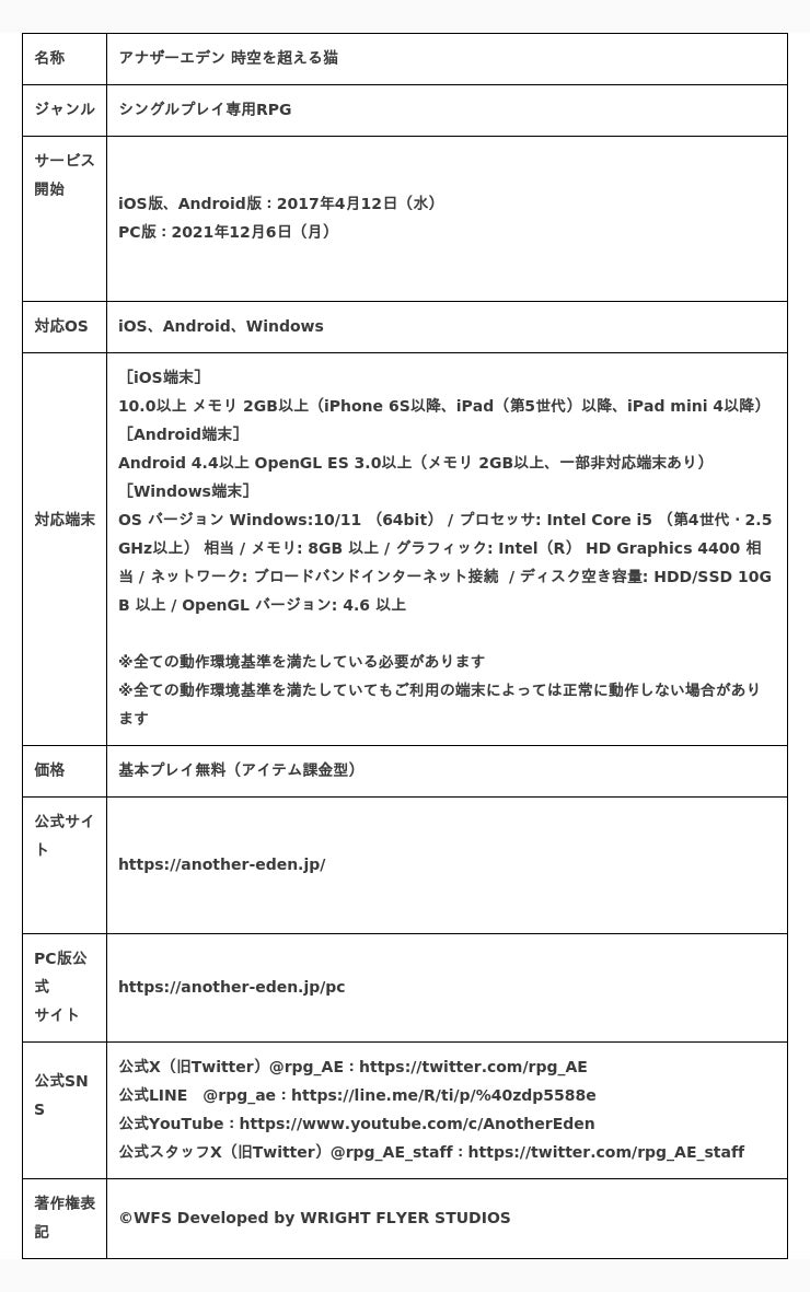 株式会社WFS(本社:東京都港区、代表取締役社長:柳原 陽太、グリー株式会社100%子会社)のゲームブランド「ライトフライヤースタジオ」が配信するシングルプレイ専用RPG『アナザーエデン 時空を超える猫』(以下、『アナザーエデン』)は、株式会社スクウェア・エニックス(本社:東京都新宿区、代表取締役社長:桐生 隆司)が販売・配信する『オクトパストラベラー』シリーズとの初めてのコラボレーションを2023年12月7日(木)より全世界同時に開始しました。