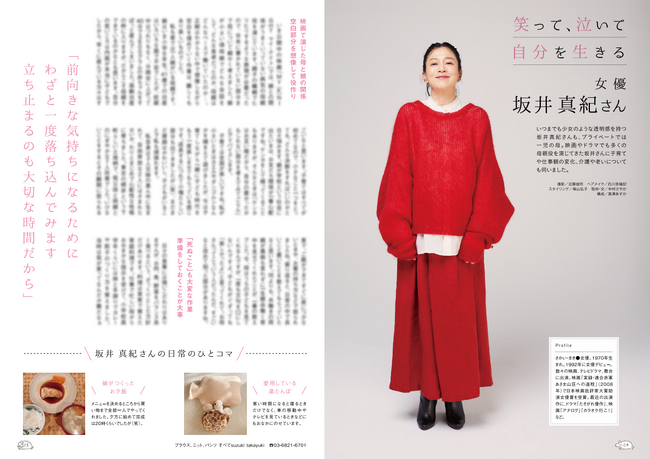 巻頭インタビューには女優・坂井真紀さんが登場。母と娘とのエピソードや また、介護予防トレーナー・久野秀隆先生の新連載「ラクに動けるカラダになる体操」がスタート。