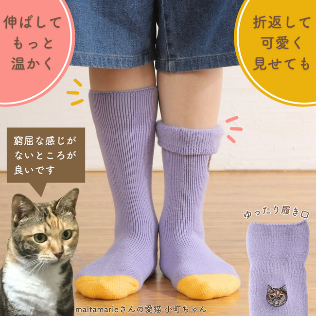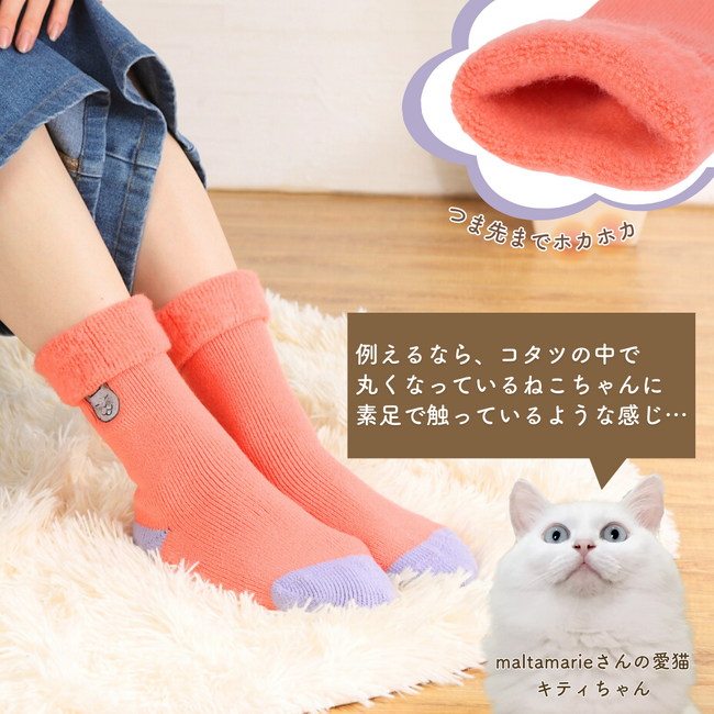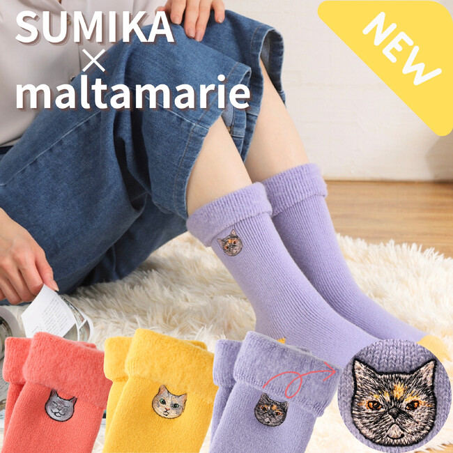 SUMIKAとmaltamarieさんの猫愛とこだわりがギュッと詰まった限定コラボ靴下で、冬の寒さを吹き飛ばしてくださいね。
