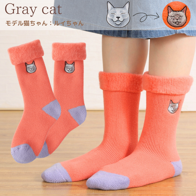 目に入るだけで心が躍るPopな色合いの靴下は、繊細な猫ちゃん刺繍を際立たせます。