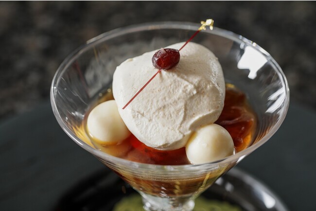 また、肉料理は石川県産の”能登牛”のロースをお召がりいただけます。石川県の美しい自然に育てられた“能登牛”は、「オレイン酸」の含有率の高さから、きめ細かな肉質と上質な脂による、とろけるような食感が特徴。デザートは、加賀棒茶のジュレやほうじ茶のアイス、白玉や小豆を使用したパフェ仕立てに。上部には、きな粉のエスプーマに飴細工と金箔が添えられ、見た目も華やかな一品に。厳選された食材を目の前で仕上げる、極上の鉄板焼コースをご堪能下さい。