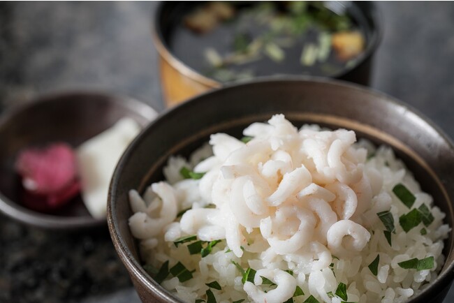 富山県産白エビの炒め御飯/赤出汁/香の物