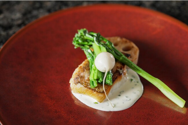 石川県産のどぐろのポワレ ノイリーベルモットソース 葱風味