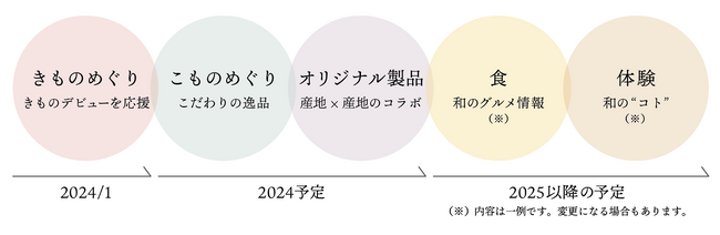 その後、きもの愛好家向けのこだわりの逸品に展開。ゆくゆくは産地と産地がコラボしたオリジナル製品の開発などさまざまな提案を予定しています。