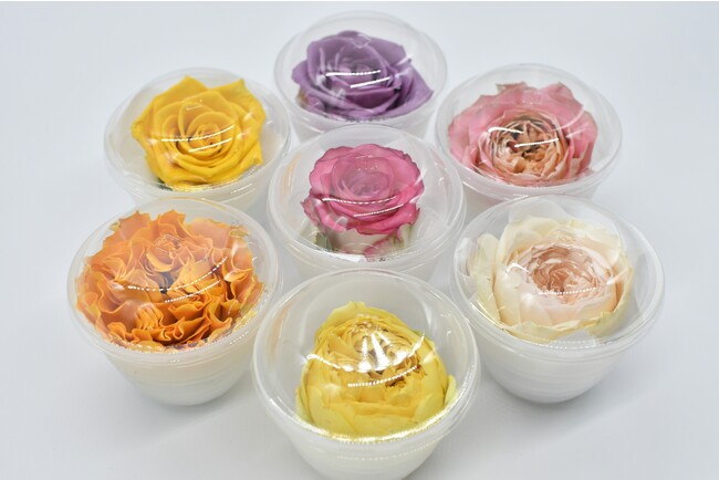 実際に手に取っていただきたいため、サンプルセットのご購入をお勧めします。現時点で、花の種類はバラのみの提供。順次種類を拡大していきますので、ご理解ください。またサンプルセットはアソートでの提供となりますので、色合い等の指定はお受けできません。