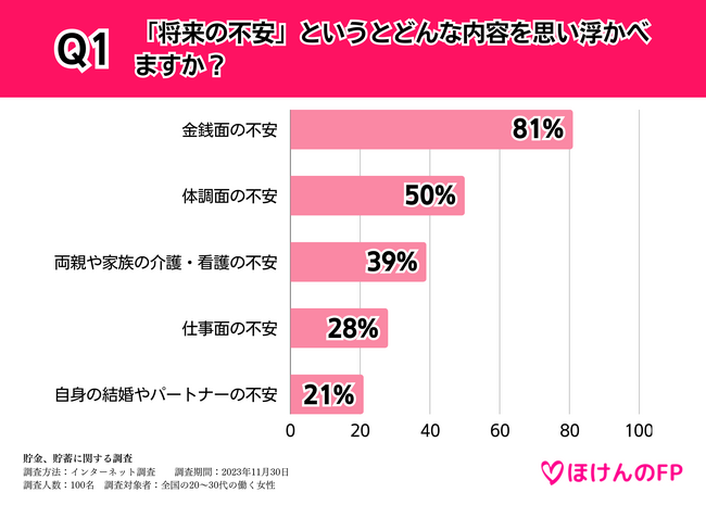 今回の調査で20~30代女性は、将来について金銭面の不安を抱えている方が多いことが明らかになりました。