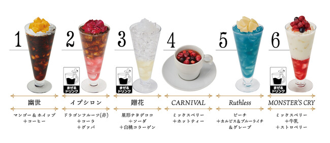 「luz」の楽曲をイメージしたコラボドリンク6種[各750円(税込)ノンアルコール]をご用意しました。