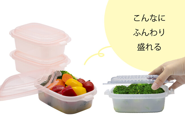 ドーム型のフタなので食材を潰さずふんわり保存が出来ます。