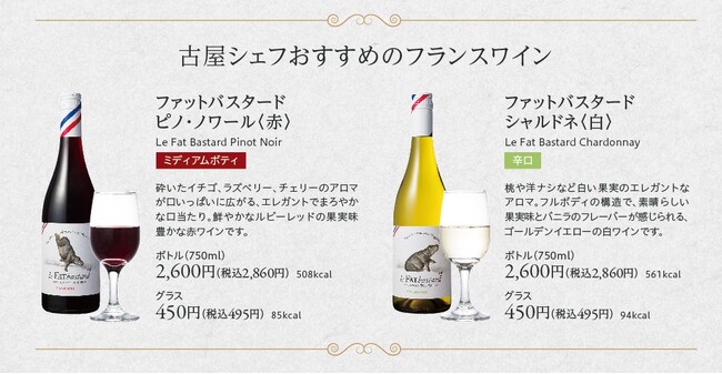 メインメニューは「トリュフ香るふんわり卵のオムバーグ」です。世界三大珍味の1つである“トリュフ”は、卵との相性が抜群です。芳醇なトリュフソースを贅沢に使用して、運ばれた瞬間からリッチな香りがふんわり広がります。とろとろ卵を割ると、そこにはデニーズ自慢のハンバーグが隠れています。それぞれおいしいものが重なり合う、まさにフレンチの醍醐味である1品が生まれました。「アボカド&チキンのサラダ」と、「海老のポタージュ~オマール風味」も一緒に楽しめる【シェフのおすすめセット】で、よりフレンチの気分を味わうことができます。さらに、お料理とのマリアージュが楽しめるフランス産ワインを古屋シェフに選んでいただきました。