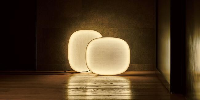 江戸時代から続く岐阜の特産品「岐阜提灯」の技術を生かした照明、Paper Moonシリーズ。無理のない素朴で自然で有機的なフォルムや、和紙ごしの和やかな灯りが、どなたにも親しみを感じさせるデザイン。
