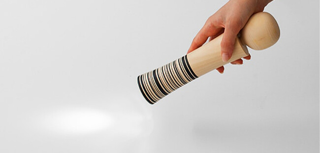宮城県鳴子温泉のこけし職人のもつ、ろくろびきの技術で手作りされたハンディライト。建築家・隈研吾が中心となり立ち上げられた東北復興支援プロジェクトから生まれました。