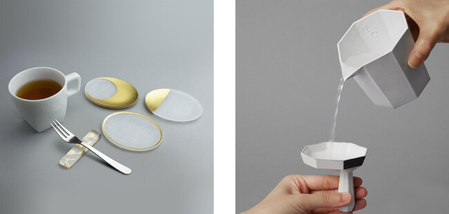 お茶の良さを再認識するために、現代の暮らしに合わせデザインをリモデルした茶器。 円錐形状を湯呑に採用することで、持ちやすさを与えています。また飲み口に向かって少しつぼんでいく形は、従来のものよりも自然と飲み口と鼻が以前より近づき、香りをより楽しめるようにつくられています。