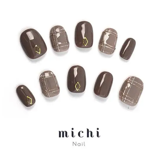 大人っぽいブラウンのチェックネイル。冬の定番チェックを上品に楽しめるデザインです。シンプルなカラーなので普段使いしやすく、オフィスでもお使いいただけるネイルチップです。